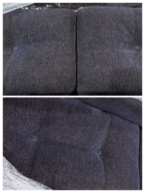 ※白飛びなどで色合いが写真では分かりにくいですが、実際の色と一番近い色は最後の画像となります。ネイビーですが、オレンジなどの糸も織り込まれている生地のため、見る角度や照明などにより紫色ぽくも見えたり生地の色の表情が変わります。