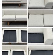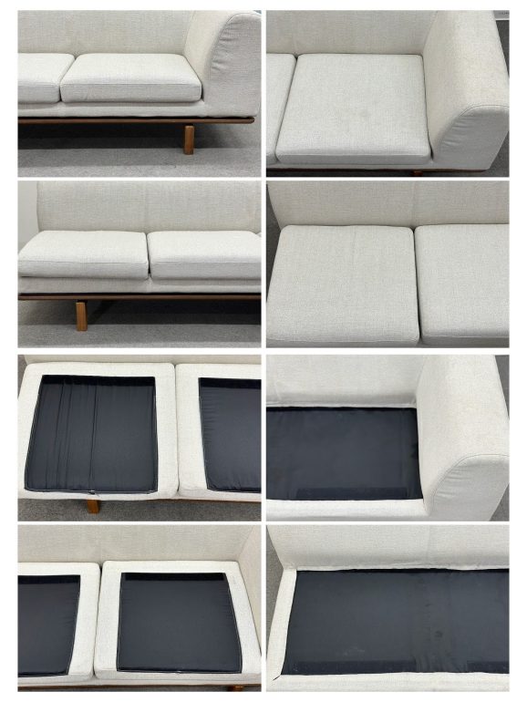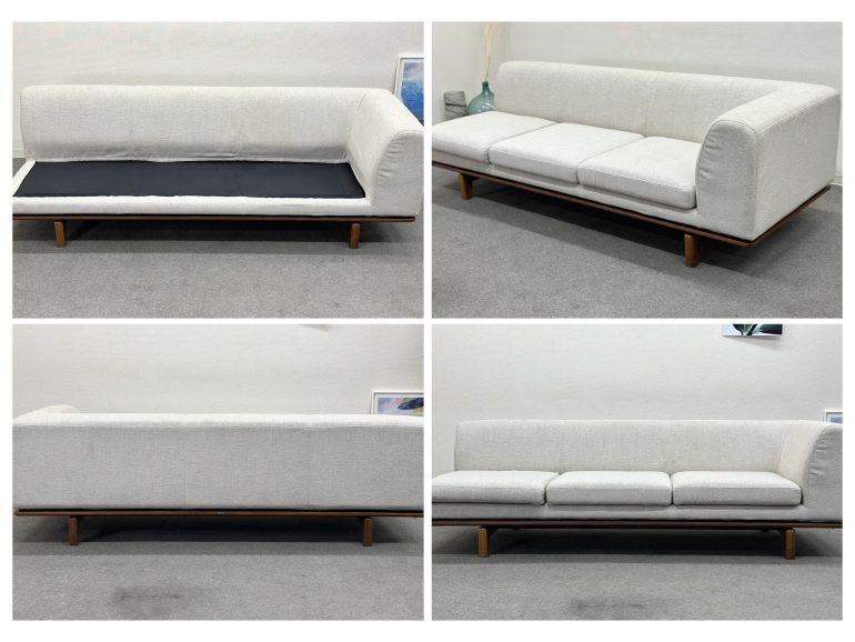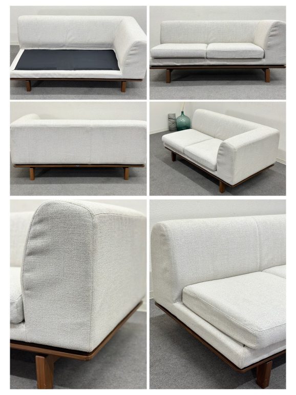 スクエアのフォルムを強調させながら、丸みを帯びた厚みのあるクッションが柔らかな印象をあたえ、すっきりとした木のフレームと浮遊感のあるデザインで、現代的なリビング空間を演出します。