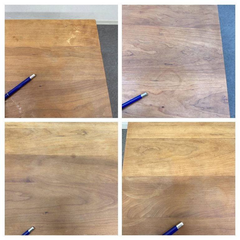 ・天板上にヨゴレ、取りきれないペン跡や輪ジミ跡などがあります。