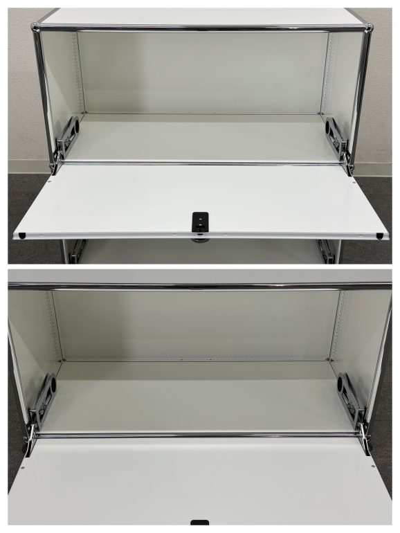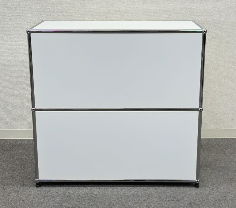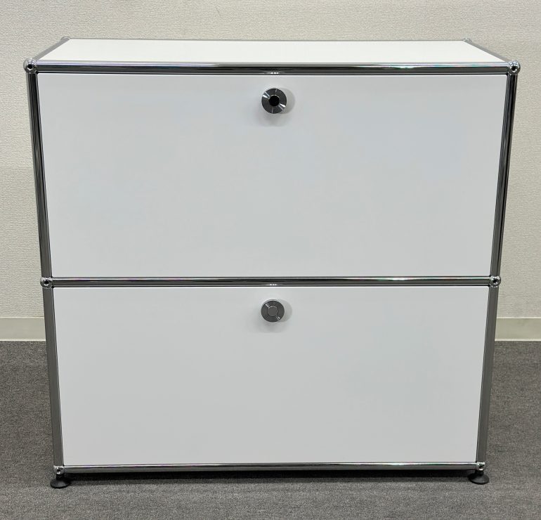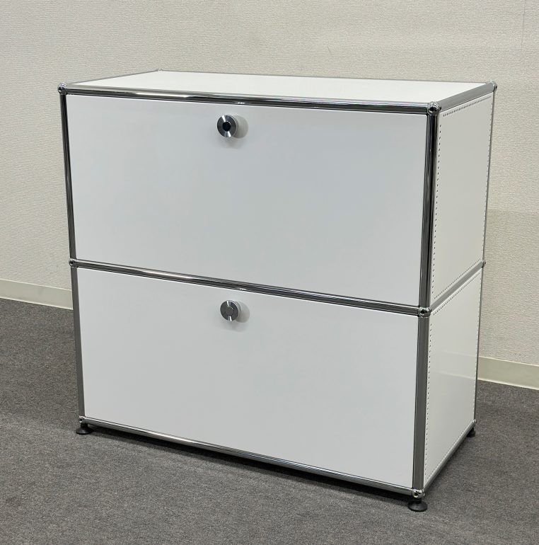 ■USM/ハラーシステム■キャビネット 1列2段 白 鍵なし オフィス リビング収納 ドロップダウンドア ピュアホワイト