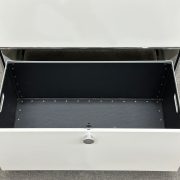 2段目はドロップダウンドア、3段目はスライド引き出しになっておりパスコボックスが付属しております。