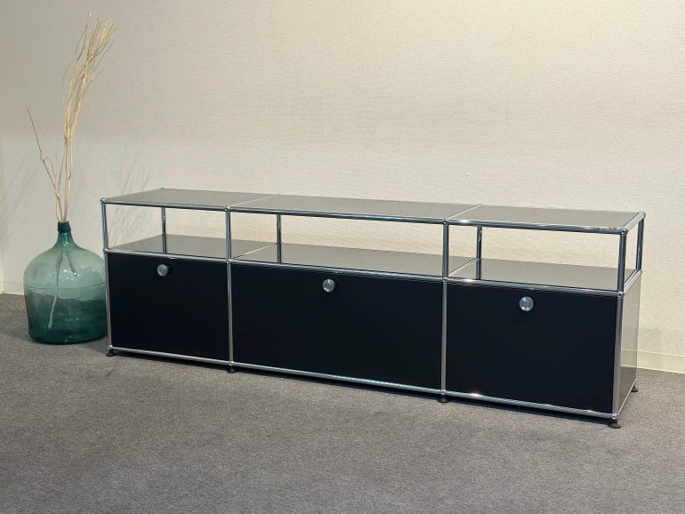 ほぼ未使用品■USM/ハラーシステム■テレビボード 3列2段 ブラック 鍵なし ソフトクローズ 収納 サイドボード