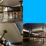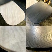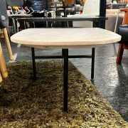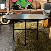天然素材ならではの美しい表情と、シャープなブラックスチール脚のコントラストが洗練されたモダンな空間を演出します。