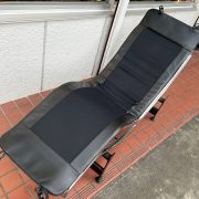 座面の角度は無段階で調節可能。お好みの体勢でゆったりとお寛ぎいただけます。まさに「休養のための機械」と呼ばれるにふさわしい寝椅子です。