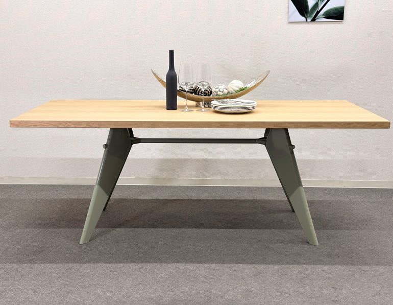 厚みのある天板と特徴的な脚部でダイニングテーブルやミーティングテーブルなど、幅広く愛されてきたプルーヴェを代表する名作テーブルです。