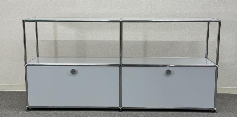 正規品!ほぼ未使用品■USMハラー■キャビネットシェルフ 2列2段 ライトグレー 鍵なし サイドボード オフィス リビング収納