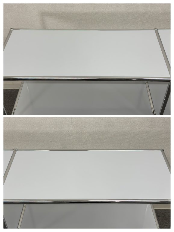 ・ほぼ未使用品となります。天板上のパネルやスチールチューブに若干のスレキズはありますがほぼ目立ちません。