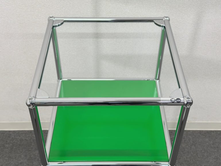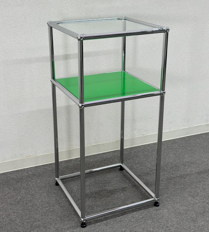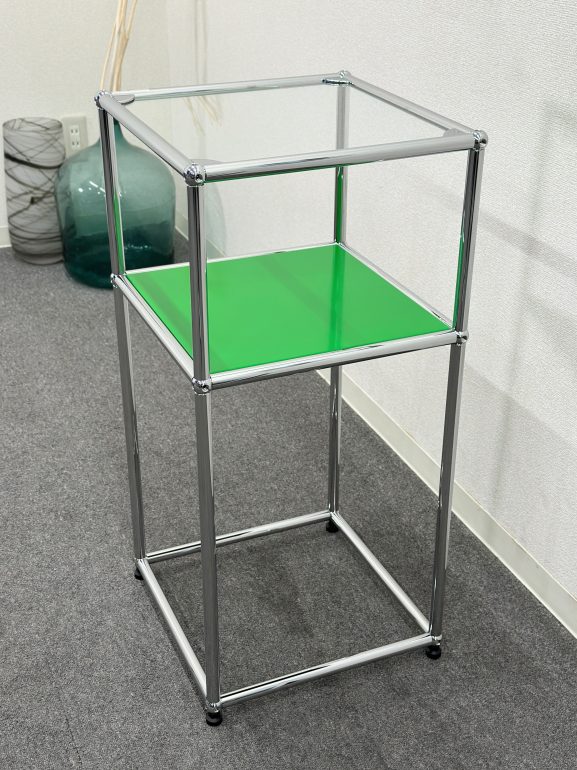 正規品!ほぼ未使用品■USMハラーシステム■小型 スリム オープンシェルフ 1列2段 グリーン×ガラス シンプル ディスプレイ