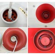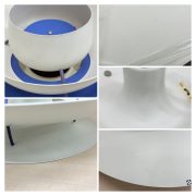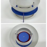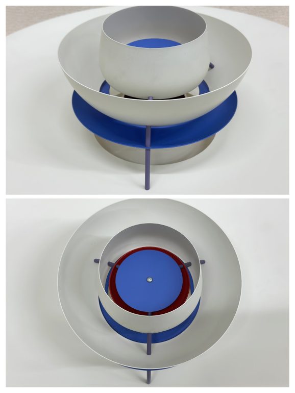 白いシェードに隠された、小さなシェードの青色と内側の赤色のコンビネーションが特徴的で、光を灯すとその強さはなくなり黄昏色が生まれます。