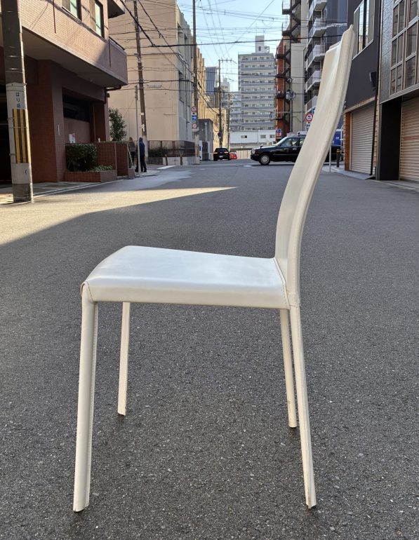 洗練されたイタリアモダンスタイルの佇まいを際立たせるオールレザーチェア。スリムなサイズながら