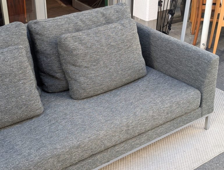 座面クッションにややへたれが見られますが、張地の劣化は一切なくグッドコンディションです。