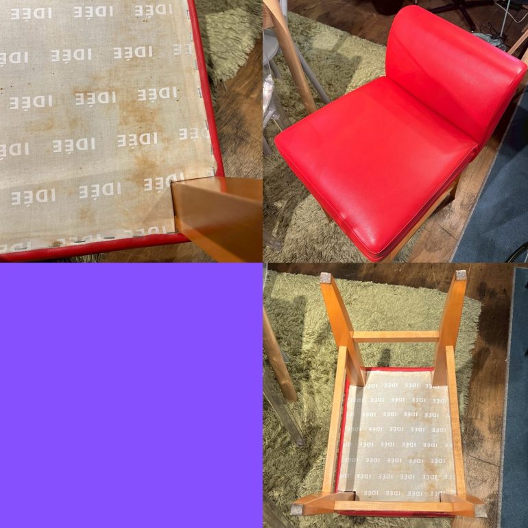 パッと目を惹く鮮やかなレッドカラーのシートと、ナチュラルな質感の木製脚を組み合わせた、イデーらしい遊び心と上品さを兼ね備えたデザインが魅力です。