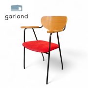 体に沿うように湾曲した成形合板の背もたれが、優しく体をサポートし、アームレストが腕を支えるため安定した座り心地です。