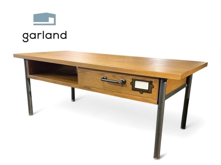 無垢材の天板とマットなブラックスチール脚の組み合わせが魅力的な、インダストリアルデザインのローテーブルです。