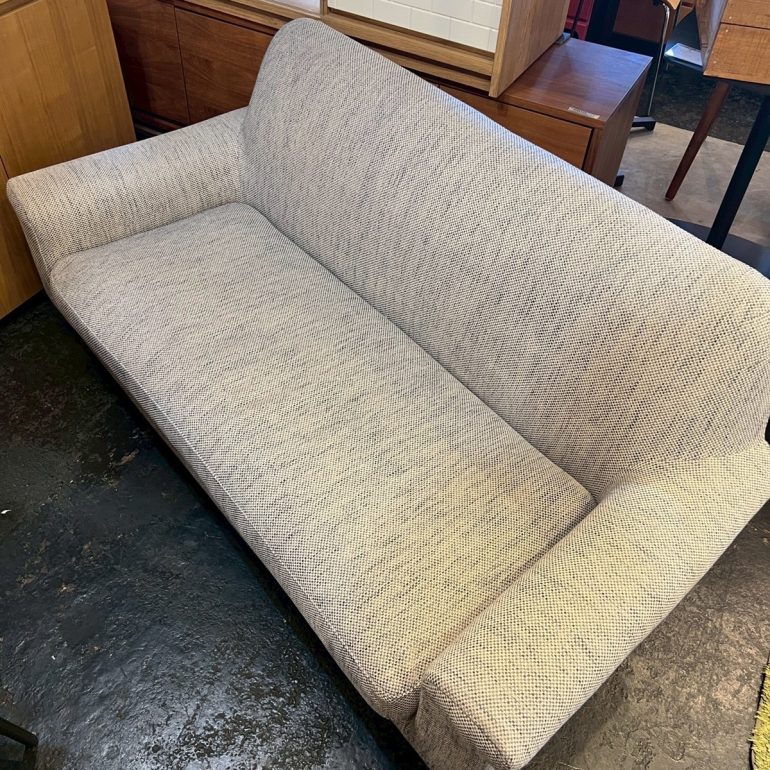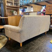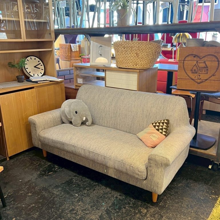 ナチュラルな木の脚部とグレー系のミックスファブリックの組み合わせは、