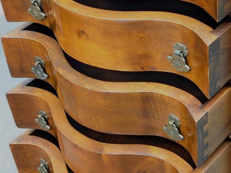 こちらは、チェストの金物から推測するには、おおよそ、1980年代までに制作された、通称″ランジェリーチェスト”になります。
